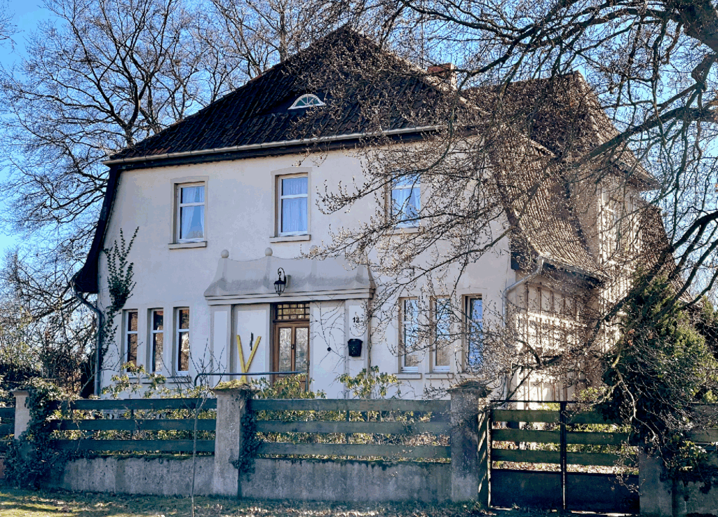 Das zu Verkauf stehende Grundstück befindet sich in Ortsrandlage (dreiseitig ohne direkte Nachbarn), ist mit imposanten 200-jährigen Buchen bestanden, hat eine befestigte Umfahrung, eine historische Teichanlage in der Gartenmitte (wahrscheinlich ein ehemaliges Kneipp-Becken) und eine schicke, zum Haus passende Garage aus der Bauzeit (mit Auto-Montage-Grube und Lagerraum im Dach): ein Ort zum spontanen Wohl fühlen, ausatmen, sich niederlassen und genießen.